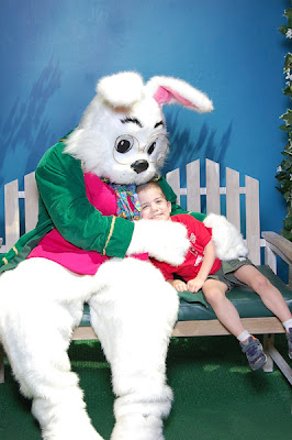 I had Monday off of work, so after Nicholas got out school we went to see the Easter Bunny (Jackson would not go near him)