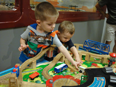 Jackson and Nicholas played with the kids trains for a while too.