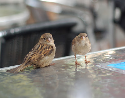 We had a few birds eat with us. They could not be shooed away.