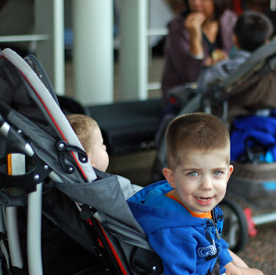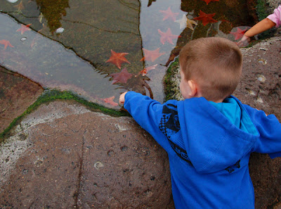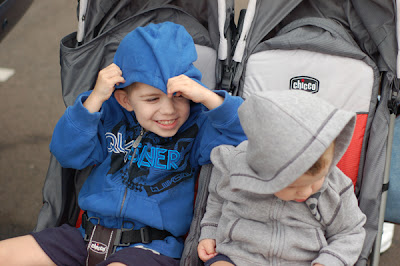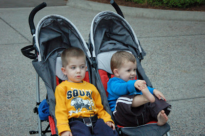 We finished up by walking through another aquarium then headed out. Boys were done. And yes, it was cool and Jackson refused to wear shoes and socks. After putting them back on about a dozen times all week, we had given up. If he was in the stroller the shoes and socks were off. If he didn't fuss we figured he wasn't cold.