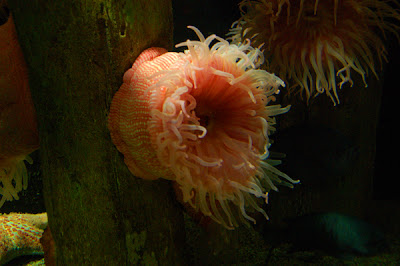After Shamu we wanted lunch but so did everyone else, so we went to the star fish area and then through a couple of the aquarium exhibits hoping the lines would go down. Nicholas would touch the water but not the star fish. He is hit or miss on this, sometimes he will at the aquarium we go to by home, but not today.