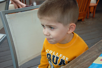 The lunch lines didn't diminish so we finally braved the lunch line.  Mike took the kids to a table while I waited in a really, really long line. Right when I was at the front waiting to get the last of our entrees, Mike came to find me and told me we had to leave. Nicholas had dumped lemonade on himself and was having a complete meltdown. He was crying and saying he was sorry, and wanted to be changed. We haven’t had to change the kids while we were out in ages, so we had no spare clothes. So I abandoned lunch at the front of the line and we went back to the hotel.